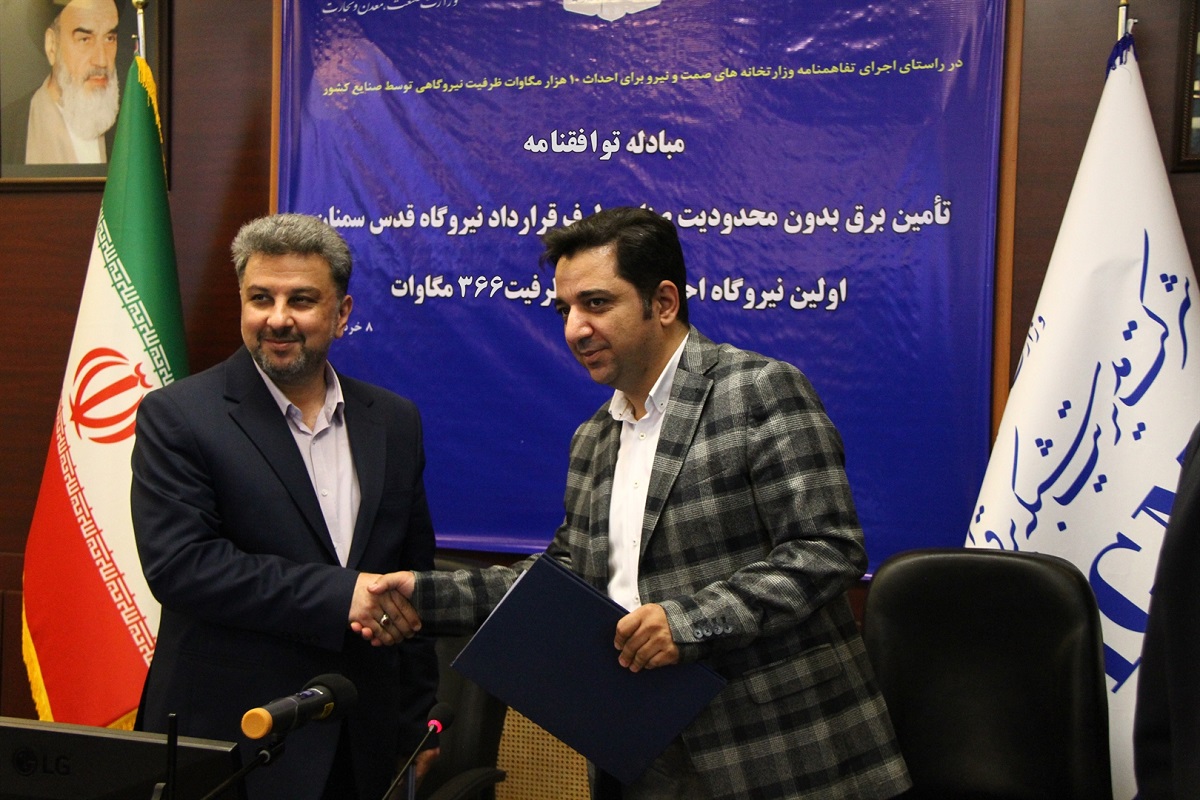 توافقنامه تامین برق بدون محدودیت صنایع طرف قرارداد اولین نیروگاه احداث شده توسط صنایع کشور با ظرفیت 366 مگاوات مبادله شد.